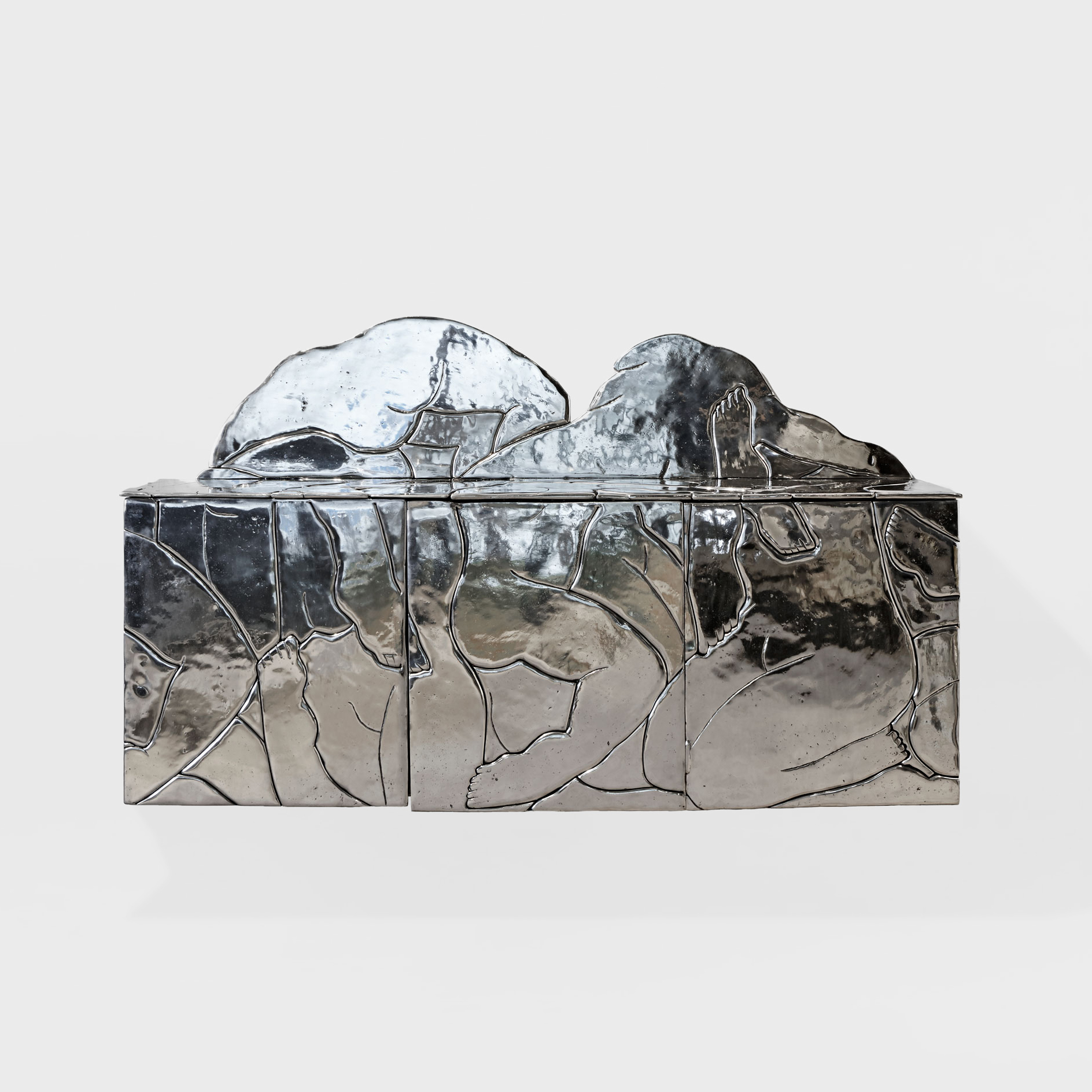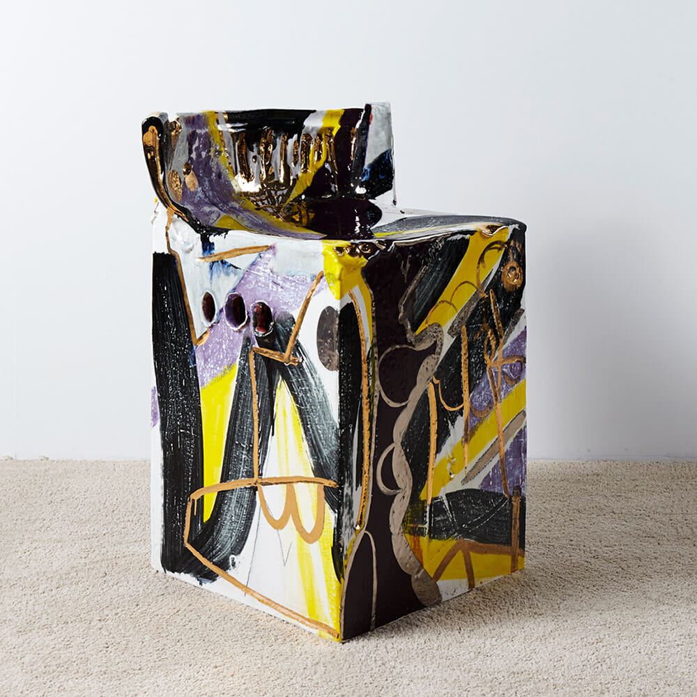 In addition, The Future Perfect debuts work from John Hogan, Reinaldo Sanguino, Christopher Stuart and Chris Wolston. Hogan’s large scale blown glass tables and objects exemplify the artists innovative mastery of glass technique. Ceramicist Reinaldo Sanguino shows his eponymous graffiti style on a new form of one-of-a-kind chairs entirely made from ceramic. Computer distorted pieces by Christopher Stuart derive their forms from ‘glitches’ produced by the normally-precise CAD design software.
