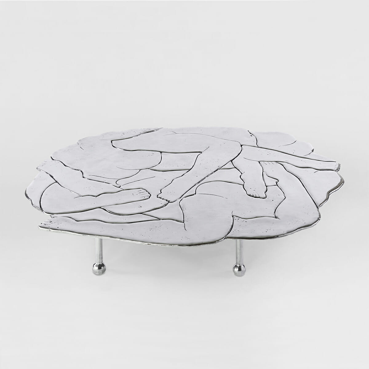 New sand cast aluminum furniture from Chris Wolston weaves figurative and abstract forms to construct planes and volumes.