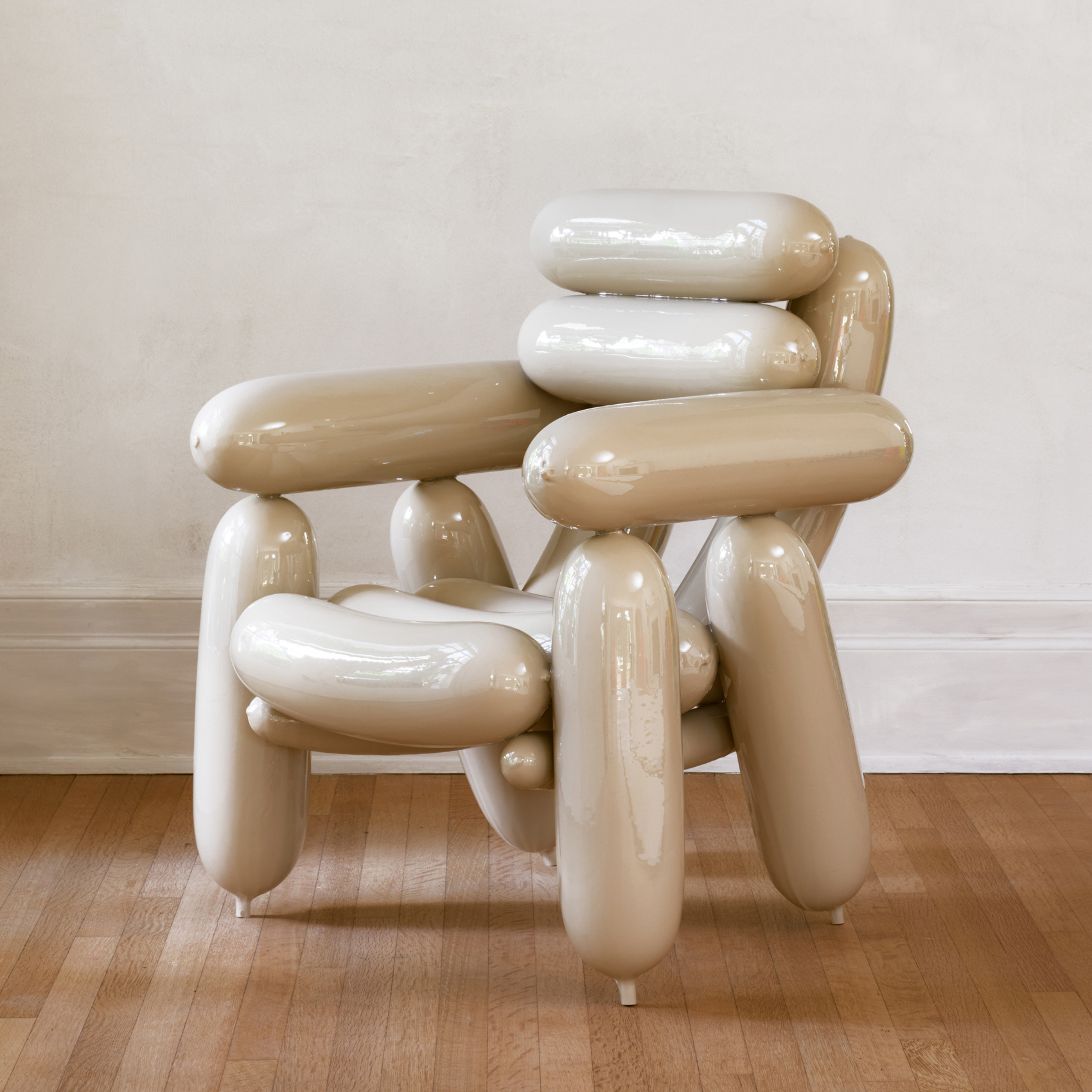With the balloon as a common denominator, Yang’s creations forge a connection between the tangible and the hypothetical. They invite us to venture beyond the boundaries of conventional perception and embrace a unique realm of existence. Within this realm, bold colors flourish, and seemingly pliable materials unveil their surprising stability, challenging our preconceived notions of form and function.