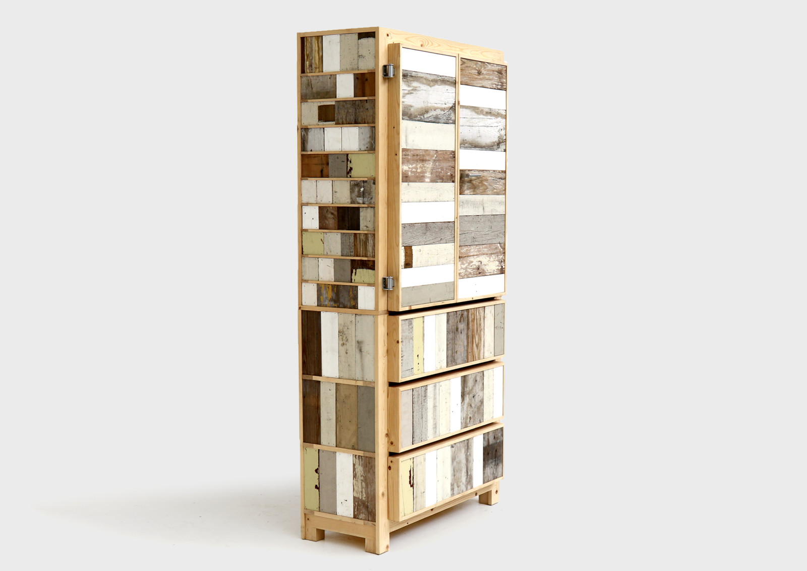 The casual viewer could be forgiven for not immediately recognizing Piet Hein Eek’s Classic cupboard in Scrapwood as something made from reclaimed scrap wood. Smooth, matte and forgiving, this piece moves and appears as something newly made.