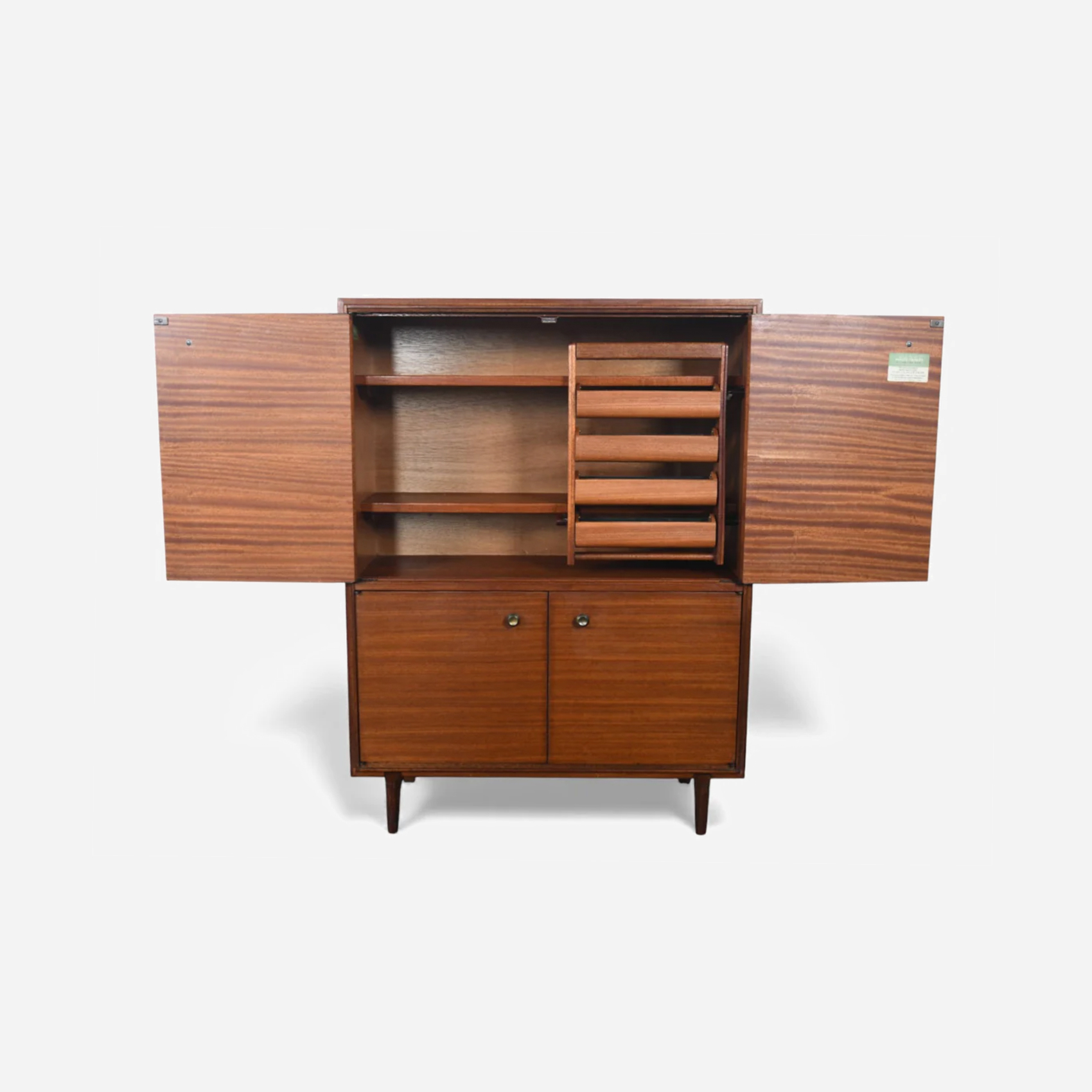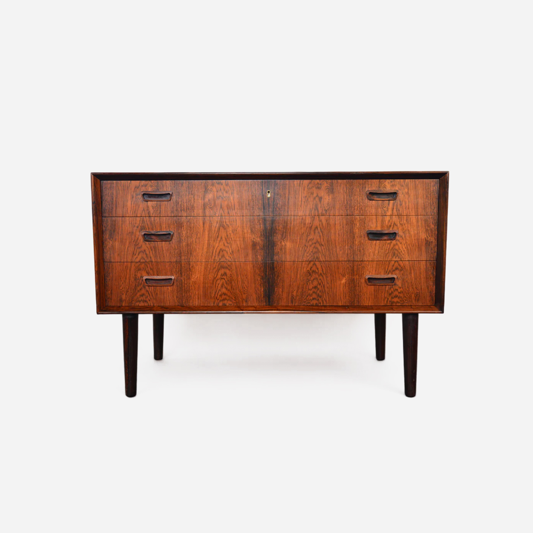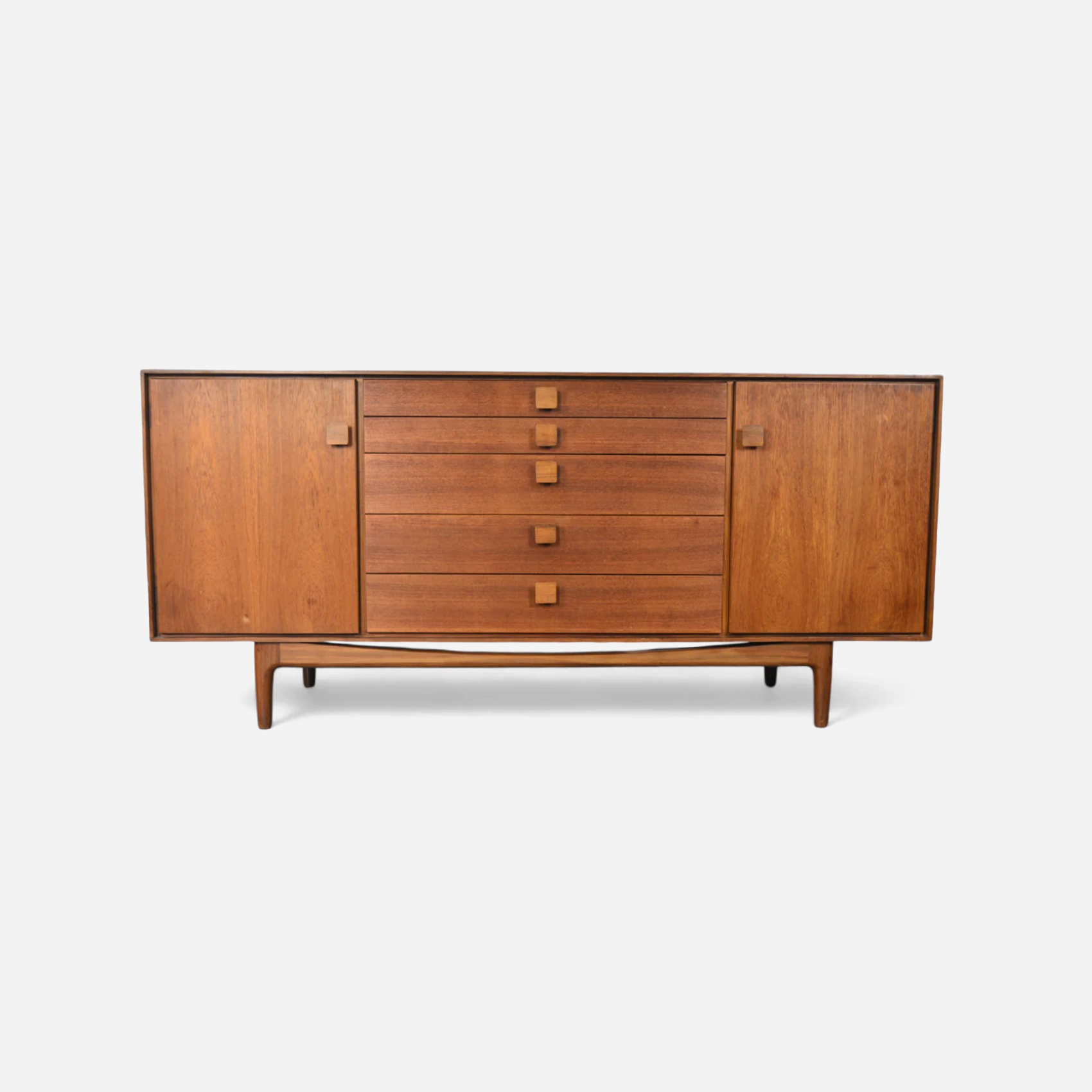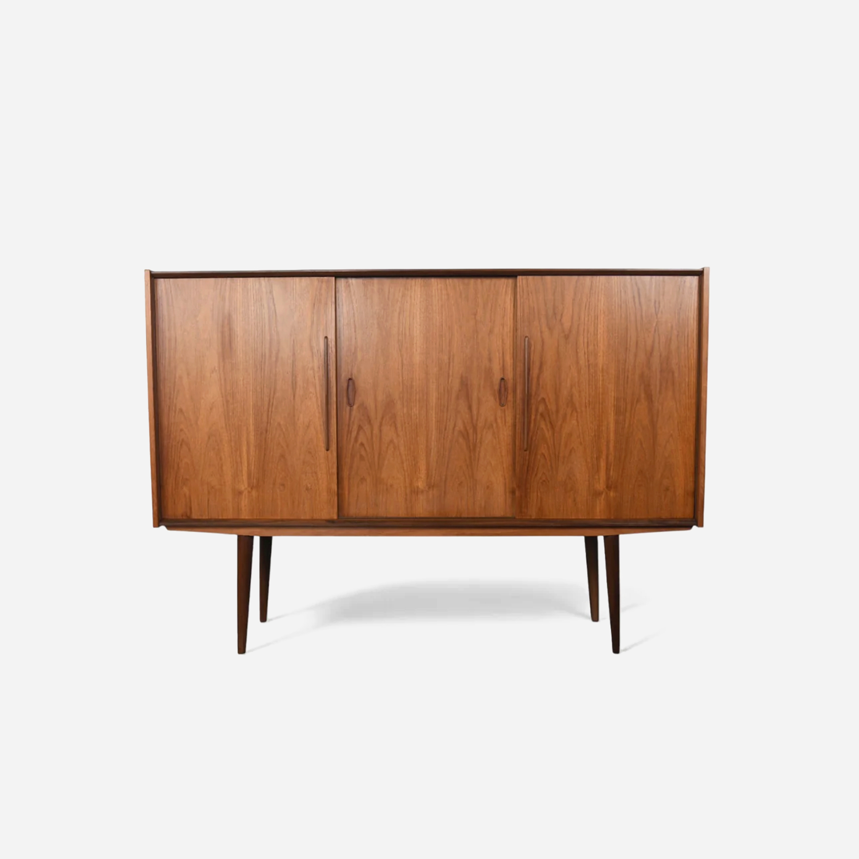 A Danish modern credenza in teak and afromosia, defined by clean lines and balanced proportions. Notable for “Fonseca” series, afromosia accents. Designed for everyday use, it offers generous enclosed storage with a long surface for display.