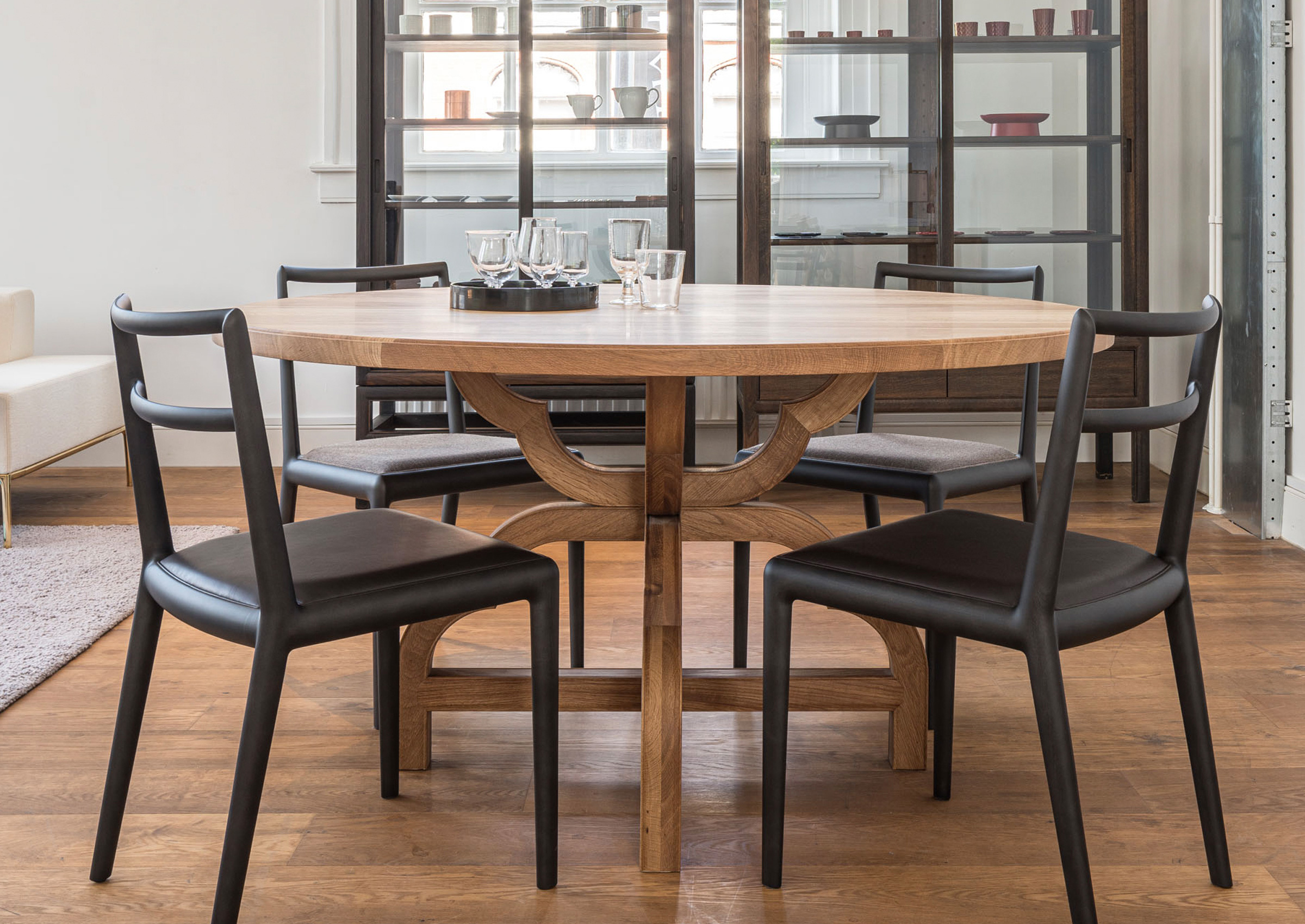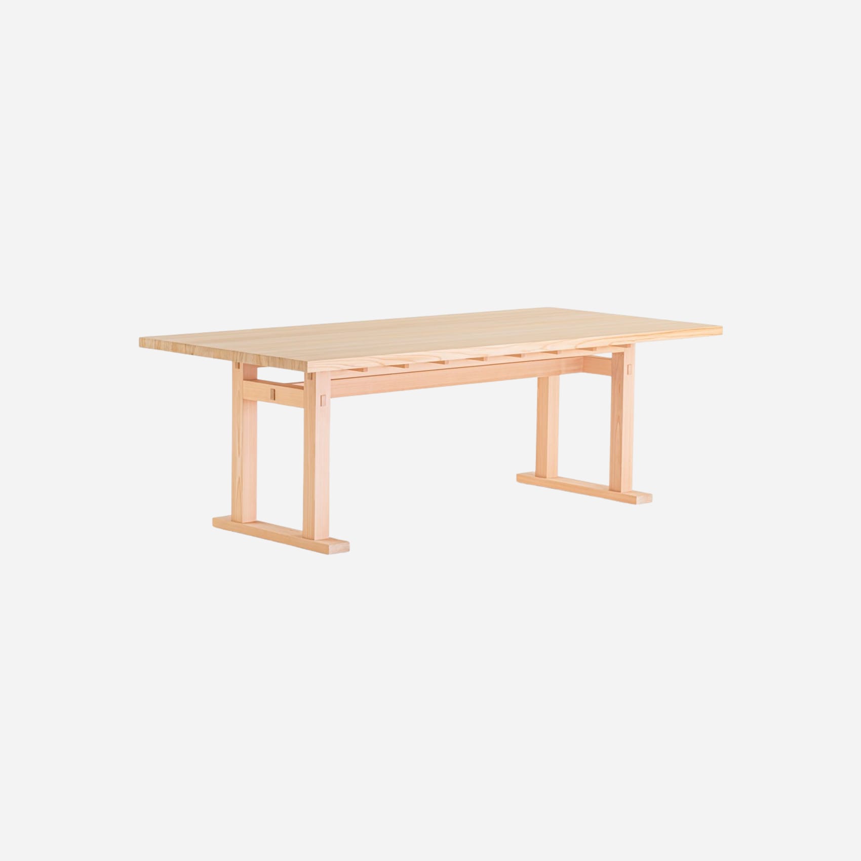 Dougong that supports eaves of temple architecture are made up of interlocking brackets of large and small timber frame, having protected buildings from natural disasters. The structural table used the stylistic beauty of wooden architecture and uniquely evolved from the architectural style introduced by China. The tabletop is likened to the large roof of a temple and the cloud-shaped legs make use of the pillars that support the large roof of a temple and the complicated structural element known as kumo-hijiki that supports the long eaves of the roof for a table created with high machining accuracy.