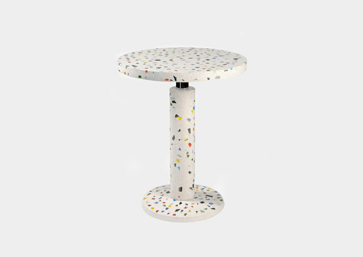 Designed by Shiro Kuramata for Memphis in 1983, the Kyoto is an iconic side table that is a perfect representation of the designer's principles. The minimalist compositional harmony, with a touch of the unexpected and subversive, are expressed through the linear shape on the one hand and the industrial materials and surface decoration on the other.
