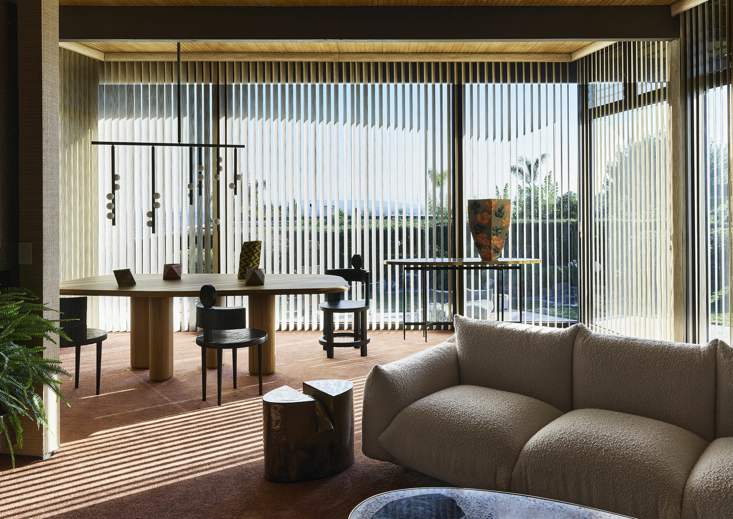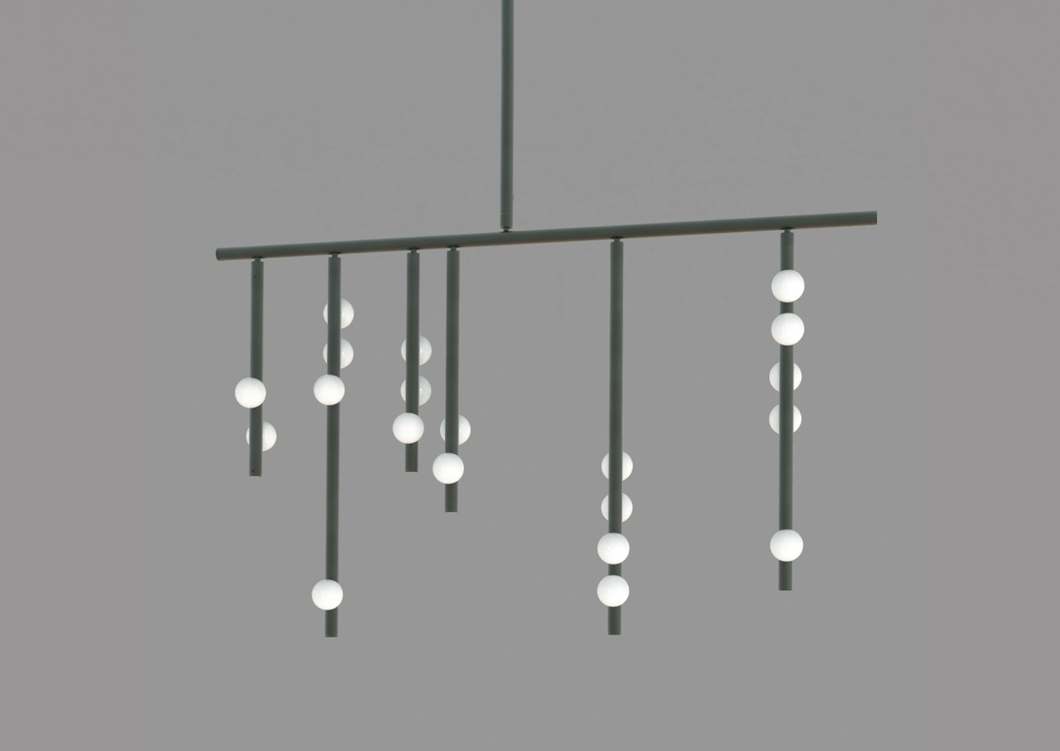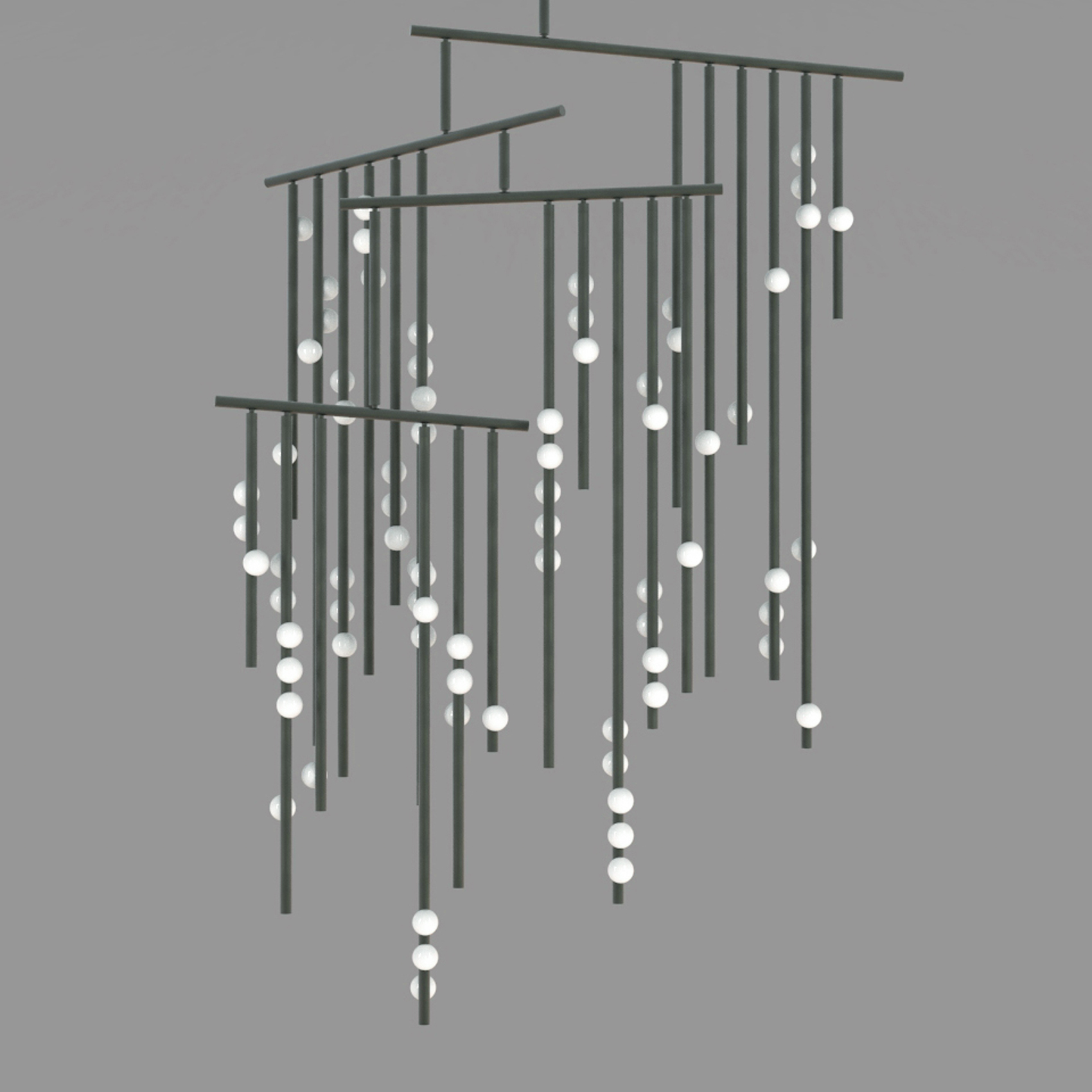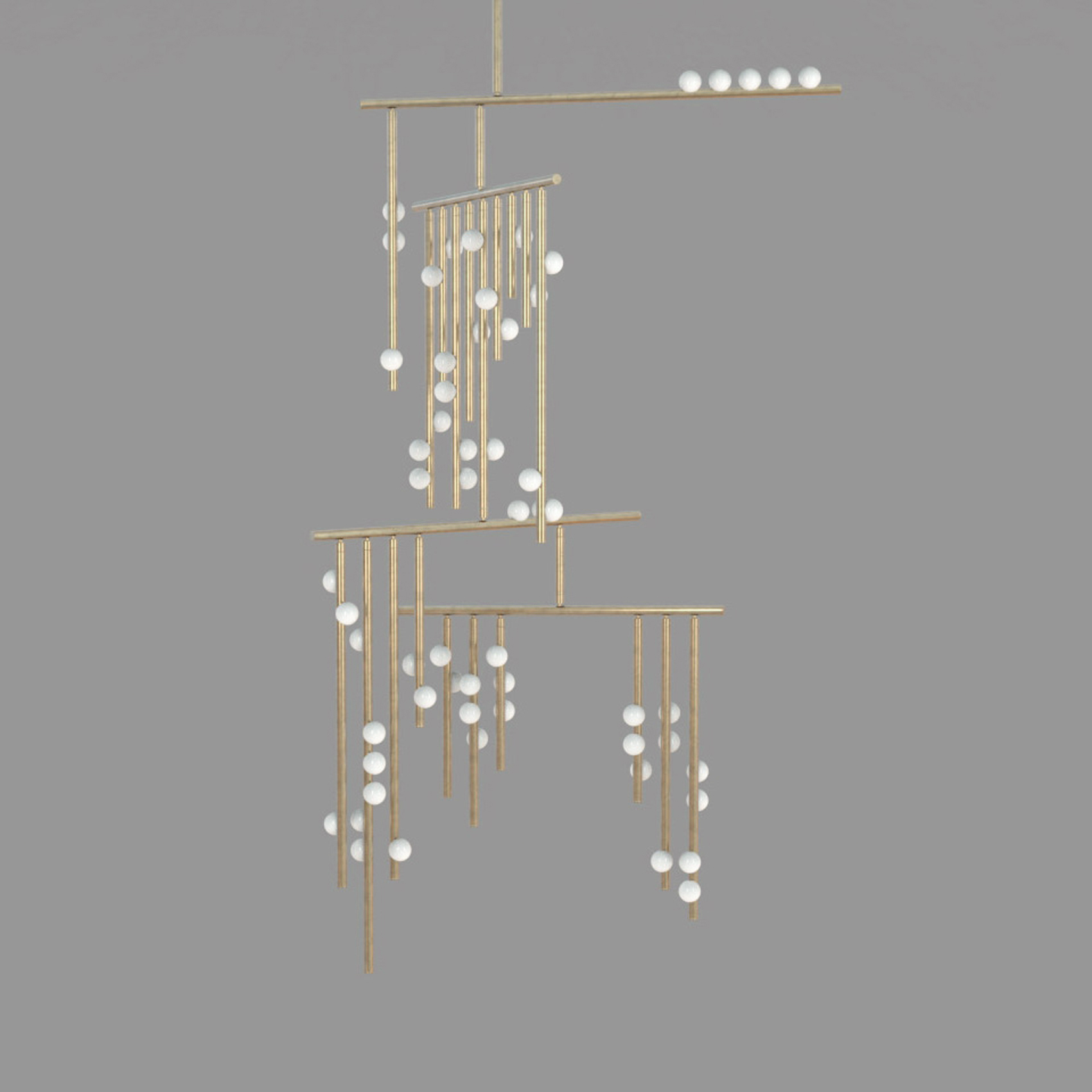Piet Mondrian's influence on modern abstraction inspired Lindsey's Drop System, where she used brass tubing and glass globes to explore the balance between rigidity and fluidity. The custom-configurable fixture elegantly plays with vertical and horizontal elements while offering various finishes for a unique collection.