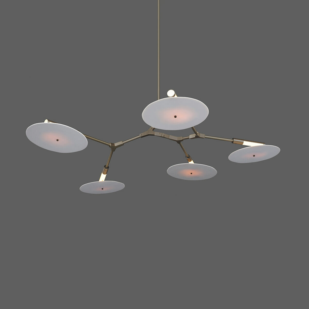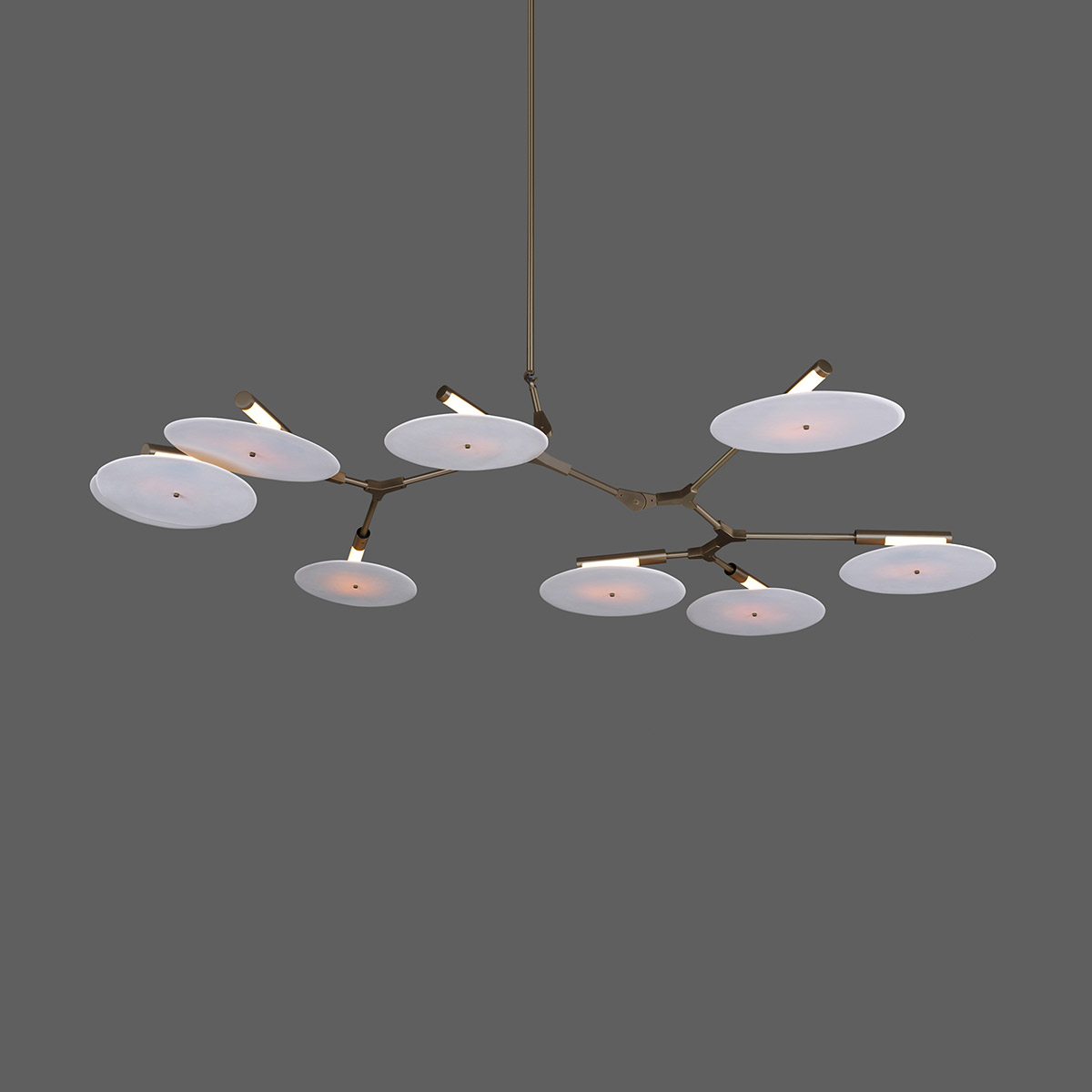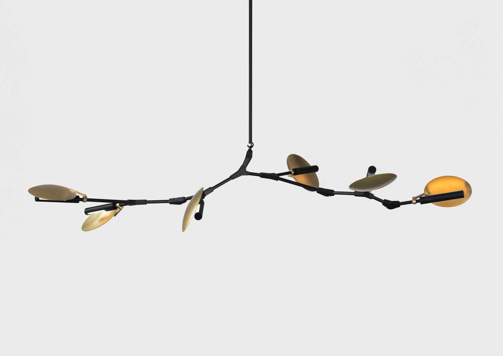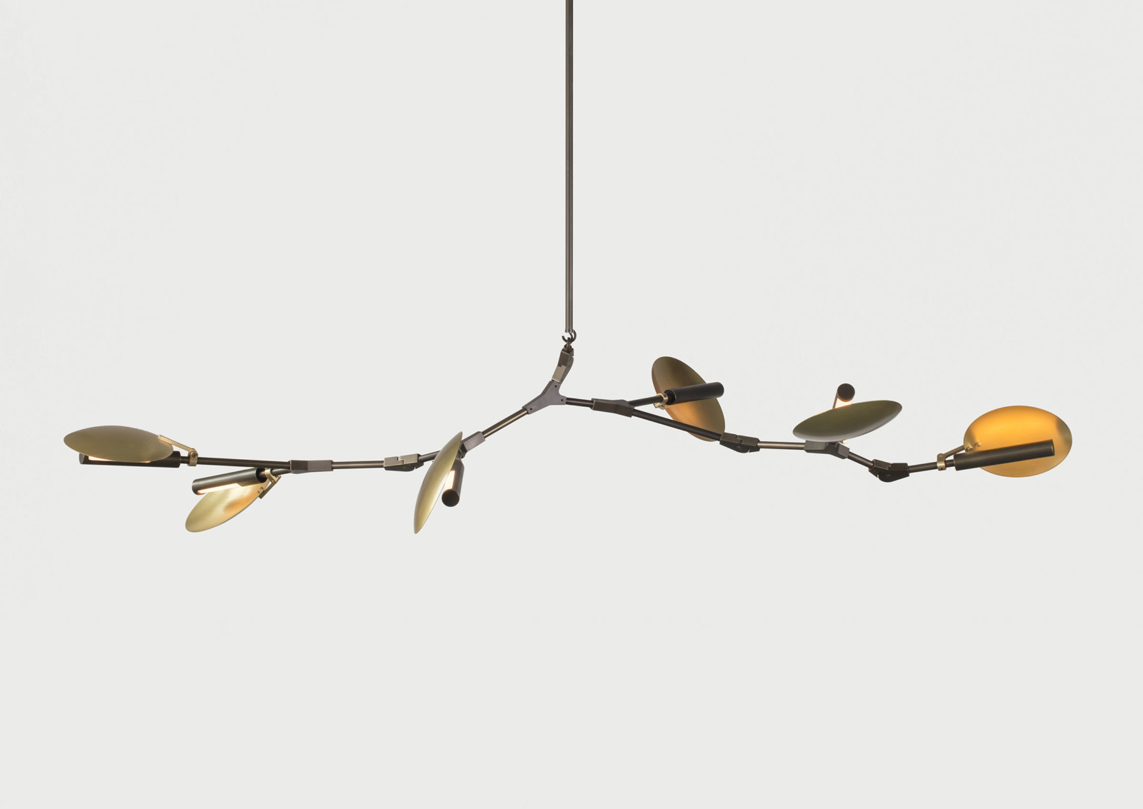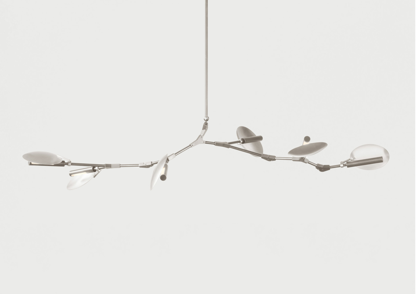 Inspired by natural phenomena, Branching explores the visual tension that results from mixing handmade porcelain with machine-made metal parts. Lindsey Adelman and her team design and build each fixture.