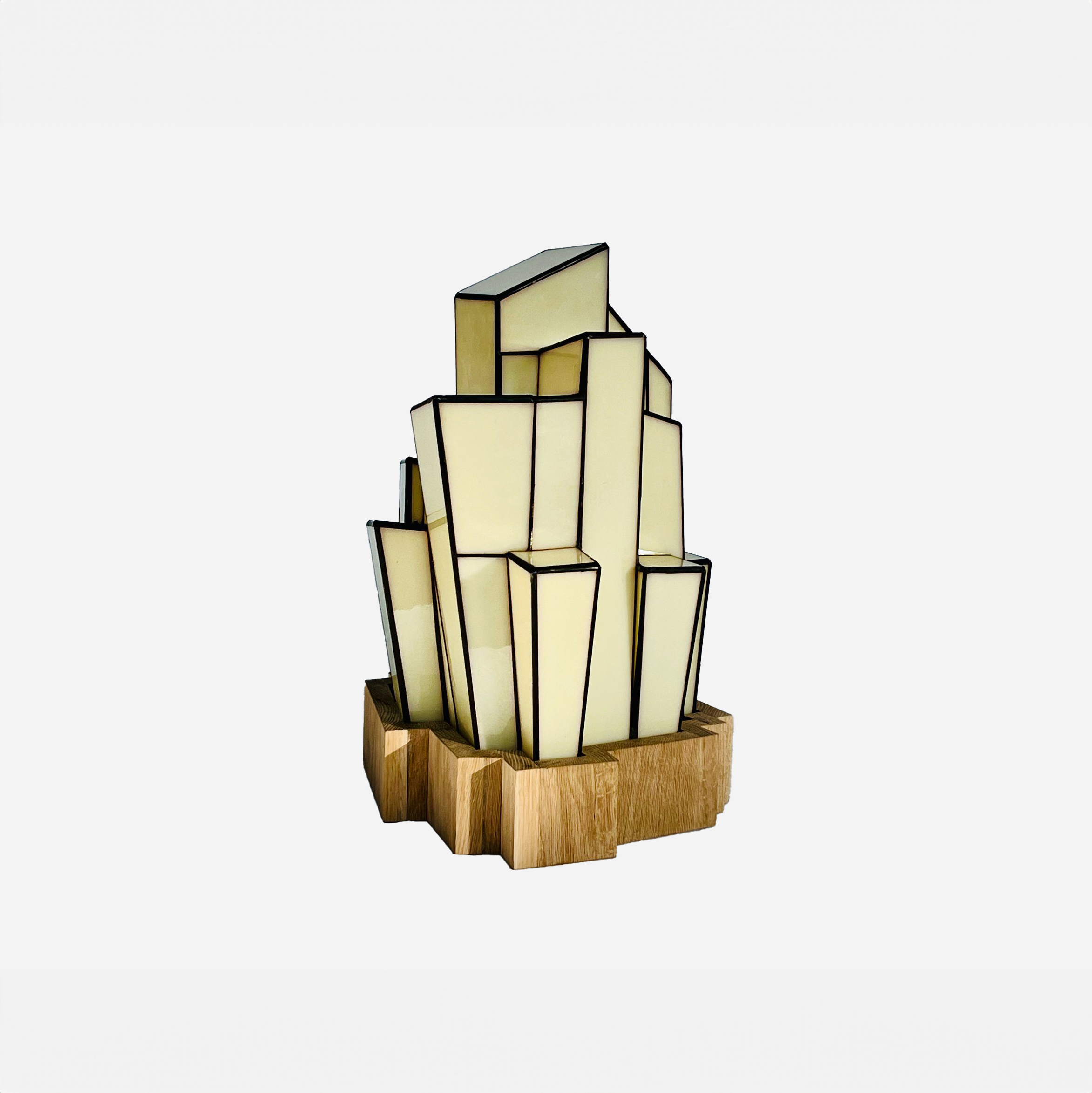 Unlaquered Wax Finished Brass & Leaded Glass