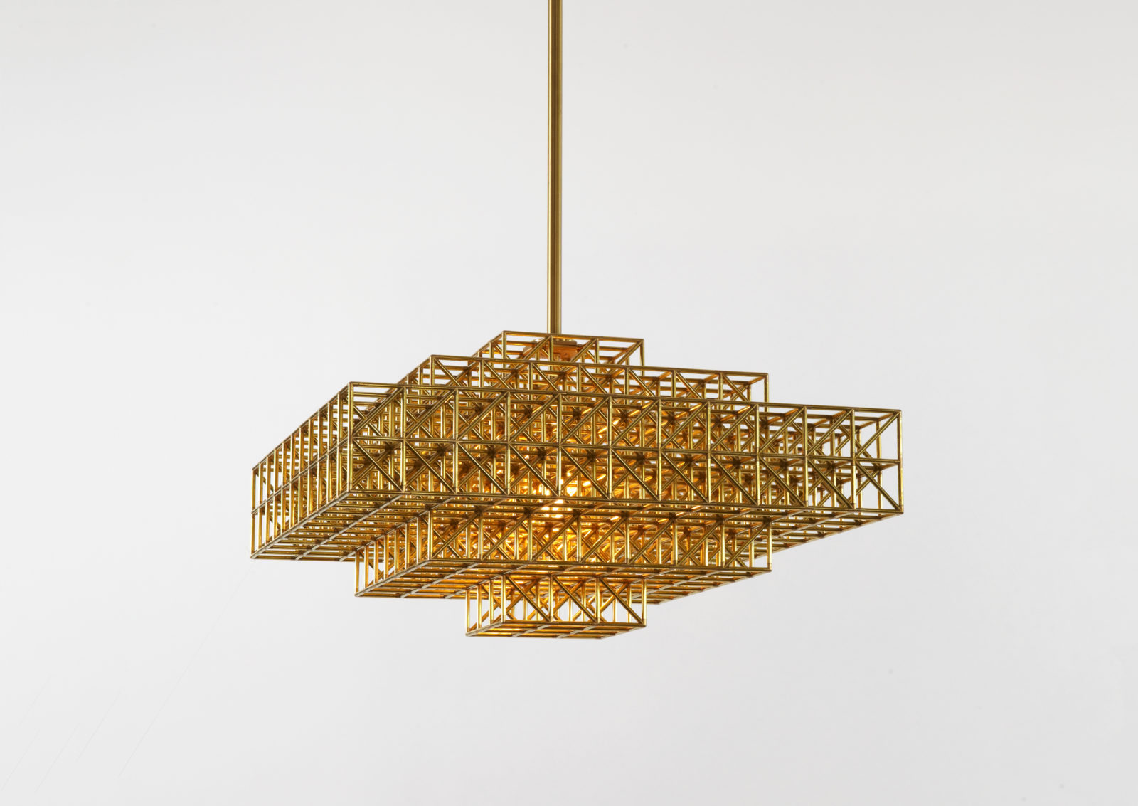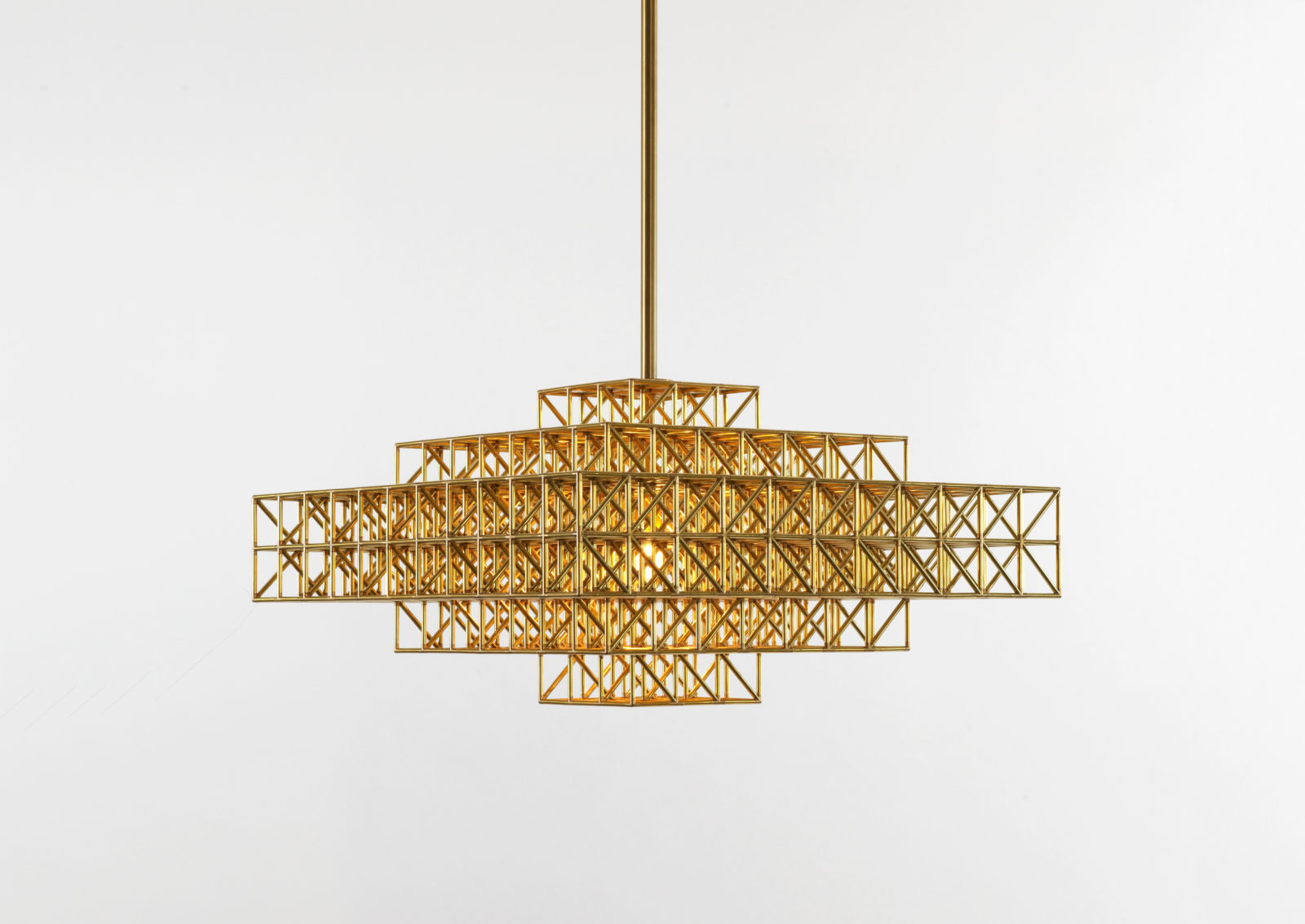 Raw and unpretentious, Gridlock is a series of lamps in the style of the Brutalist movement. Gridlock feels industrial in its straightforward, platonic forms and the repetitive efficiency of the grid; however, it is assembled entirely by hand from thousands of tiny brass parts. Philippe Malouin's tribute to the industry-inspired, labor-saving dreams of modernism is paid for in toil.