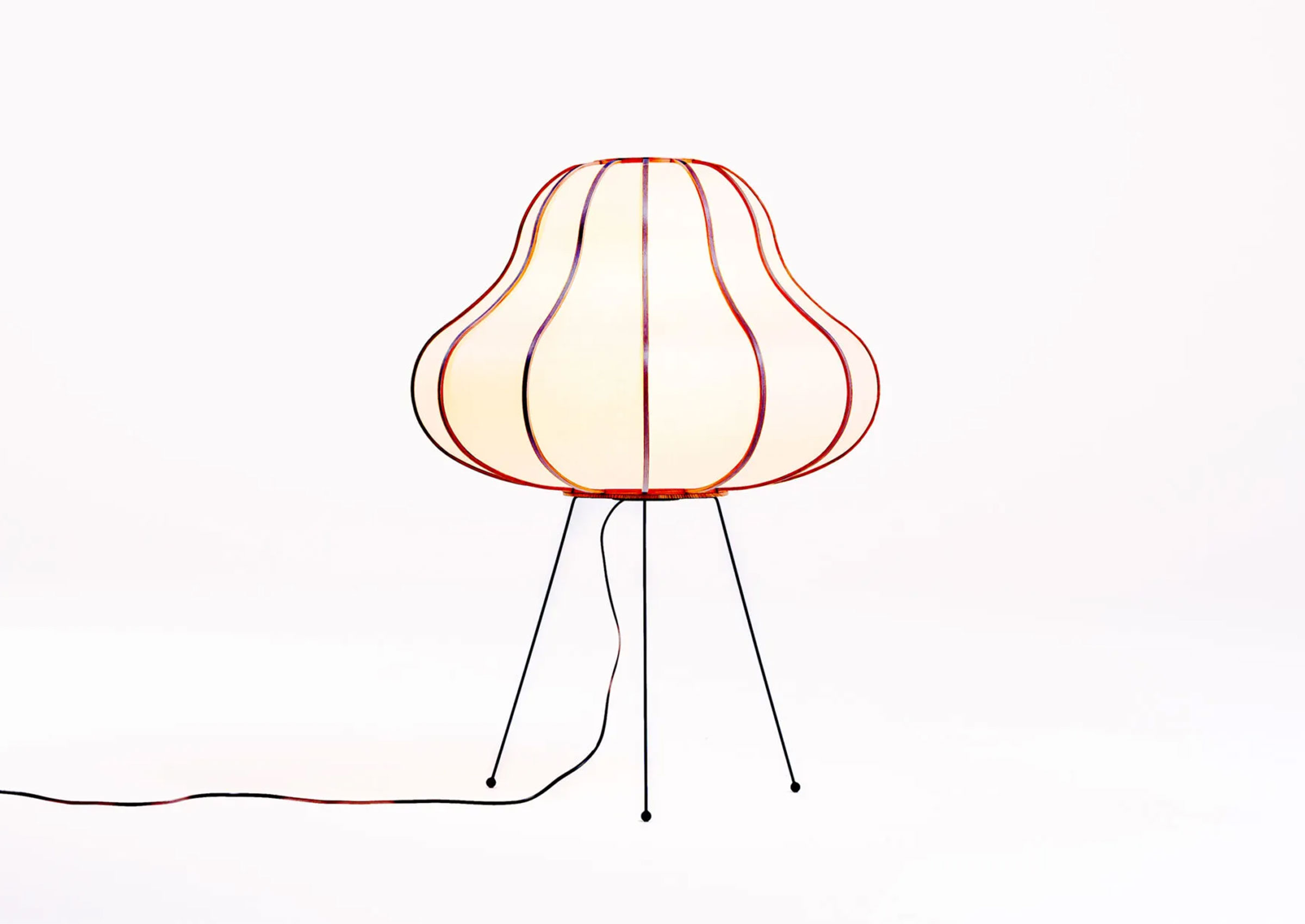 The Hozuki lighting series features fluid, interconnected curves that enhance its dimensionality and create subtle shadows. Available in pendant and floor-standing models, the minimalist design suits various spaces, whether used singly or in groups. The organic shape of the curves adds warmth and cohesion to interiors, providing both an artistic and functional lighting solution. Hozuki’s understated elegance and innovative design make it a versatile piece that complements modern and contemporary environments while offering a distinctive lighting experience.